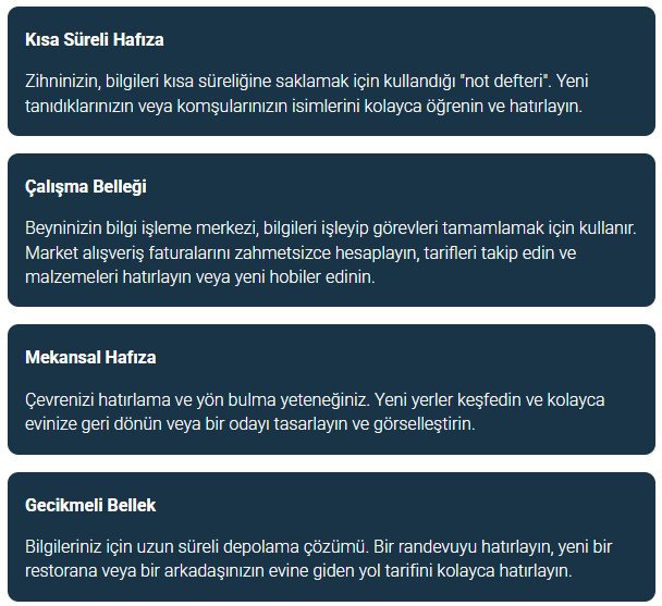 İsimleri hatırlamakta zorlanıyor, önemli eşyaları unutuyor veya yol tariflerini hatırlamakta güçlük çekiyor musunuz? Bunların hepsi hafıza kaybının yaygın belirtileridir. NeeuroBike, zihninizi keskinleştirmenin ve unutkanlıkla mücadele etmenin eğlenceli ve ilgi çekici bir yolunu sunuyor.